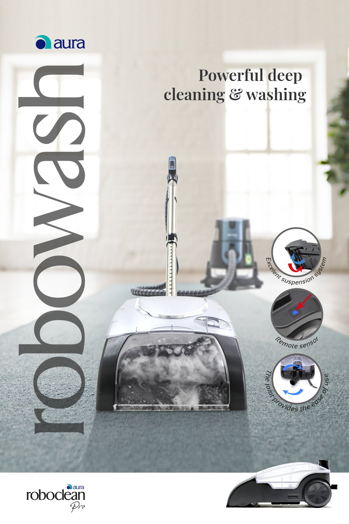 🧽Découvrez RoboWash, l’accessoire haute performance signé Roboclean d’Aura pour un nettoyage profond et hygiénique de vos tapis et moquettes. Grâce à son système d’injection-extraction breveté, RoboWash injecte de l’eau propre (ou une solution de nettoyage douce) directement dans les fibres, puis l’aspire instantanément – tout en brossant activement. Doté d’un moteur puissant de 150 W, d’une pompe à eau intégrée et d’une brosse rotative motorisée, RoboWash élimine en profondeur saletés, acariens, allergènes et odeurs, sans laisser de résidus.